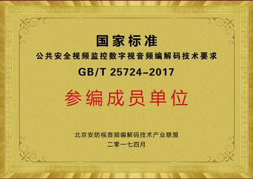 國家標(biāo)準(zhǔn)公共安全視頻監(jiān)控數(shù)字視音頻編解碼技術(shù)要求參編成員單位