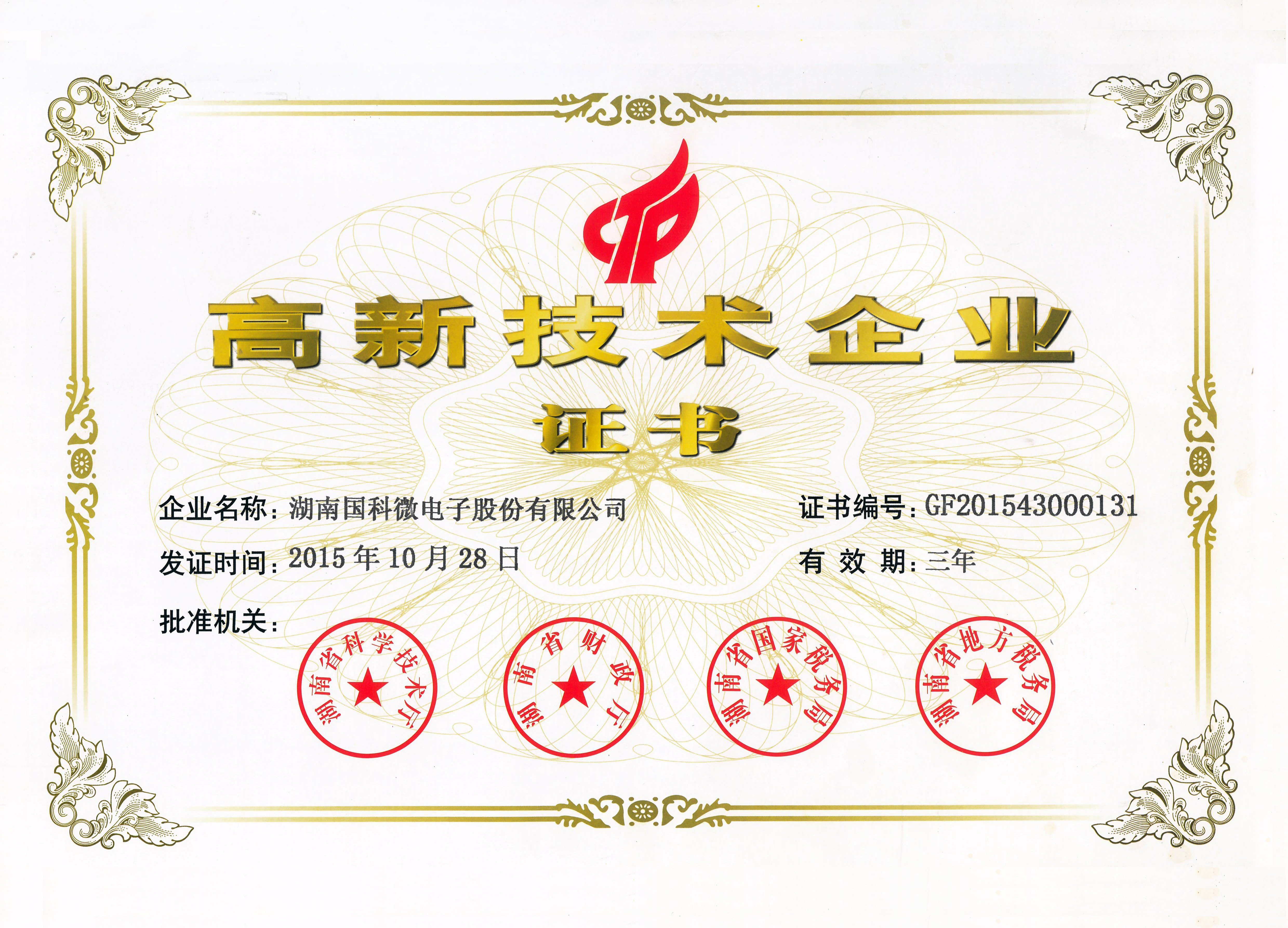 高新技術(shù)企業(yè)證書